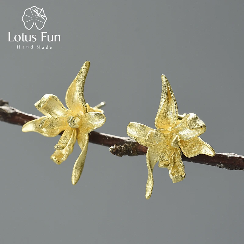 Name: Lotus Fun-pendientes de plata de primera ley con forma de flor para mujer, aretes pequeños, plata esterlina 925 Plata de Ley auténtica, oro de 18 quilates, 18K, diseño fino, hecho a mano