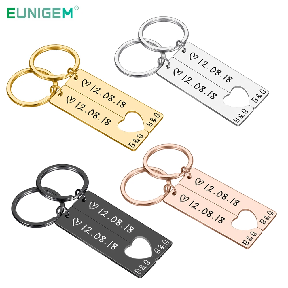 Mejor Joyería personalizada de EuniGem Official Store por Llavero personalizado de corazón para parejas, soporte para llaves King con grabado de nombre y fecha y cadena de anillos, regalo novias y novios